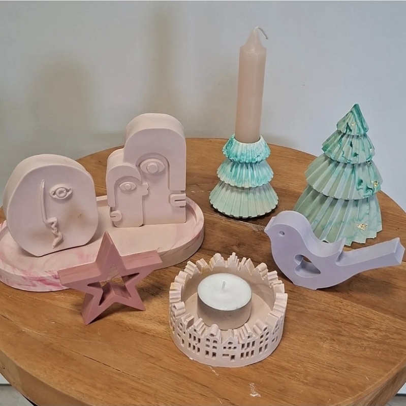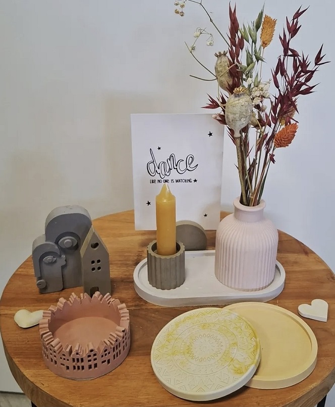 Je gaat tijdens deze workshop aan de slag met gietpoeder. Door dit te mengen met water en eventueel kleurpigment, kan je het in een siliconen mal gieten en maak je de leukste accessoires. Na een klein half uurtje kan je de decoratie uit de mal halen.